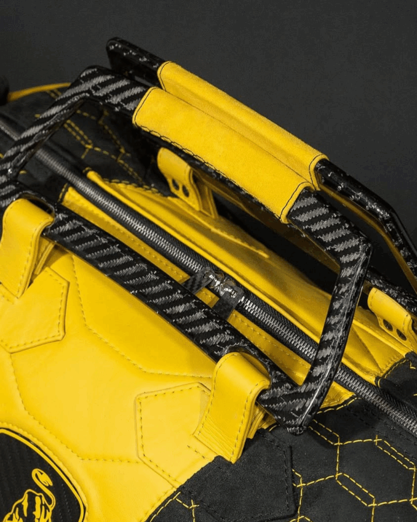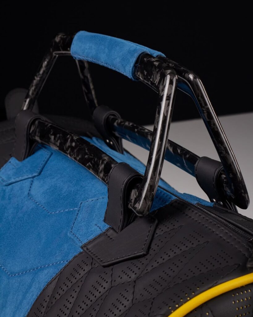 Hand-finished stitching, precision laser-cut trims, and brushed metal zippers complete the bag’s bold yet sophisticated look. Every seam and surface is built to handle the rigors of travel while maintaining a polished, luxurious presence.